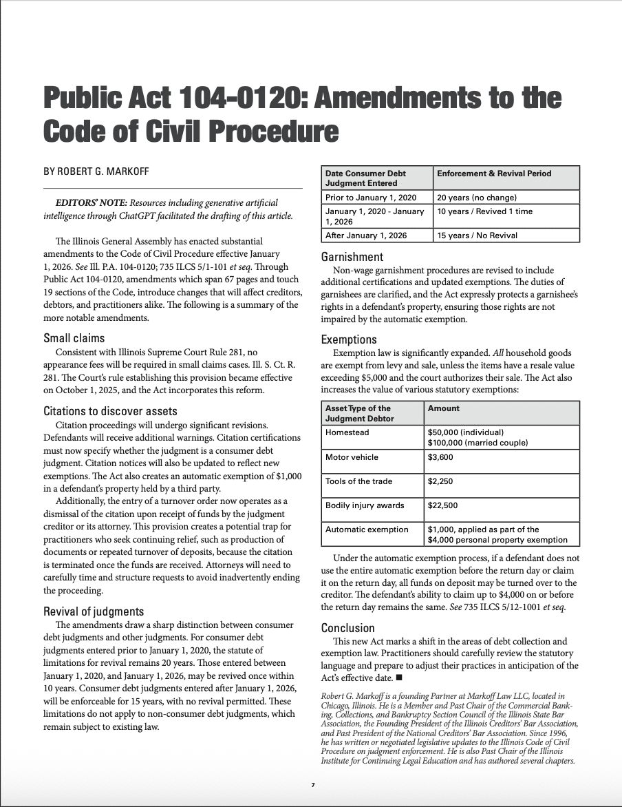 Public Act 104-0120: Amendents to the Code of Civil Procedure